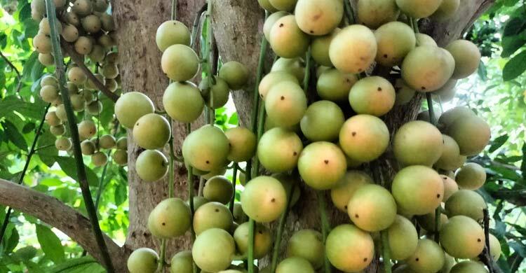স্থানীয় বাঙালিদের কাছে লটকন নামে পরিচিত ফলটি চাকমা ভাষায় ‘পচিমগুল’, মারমা ভাষায় ‘ক্যানাইজুসি’ ও ত্রিপুরা ভাষায় ‘খুচমাই’ নামে পরিচিত। জুন মাসের মাঝামাঝি পাকতে শুরু করে এ ফল। এ সময়ে বাজারেও আসতে শুরু করে। গাছের গোড়া থেকে শুরু করে প্রতিটি ডালে থোকায় থোকায় ঝুলতে দেখা যায়। পুষ্টিগুণসমৃদ্ধ লটকন ছোট-বড় সবার প্রিয়।